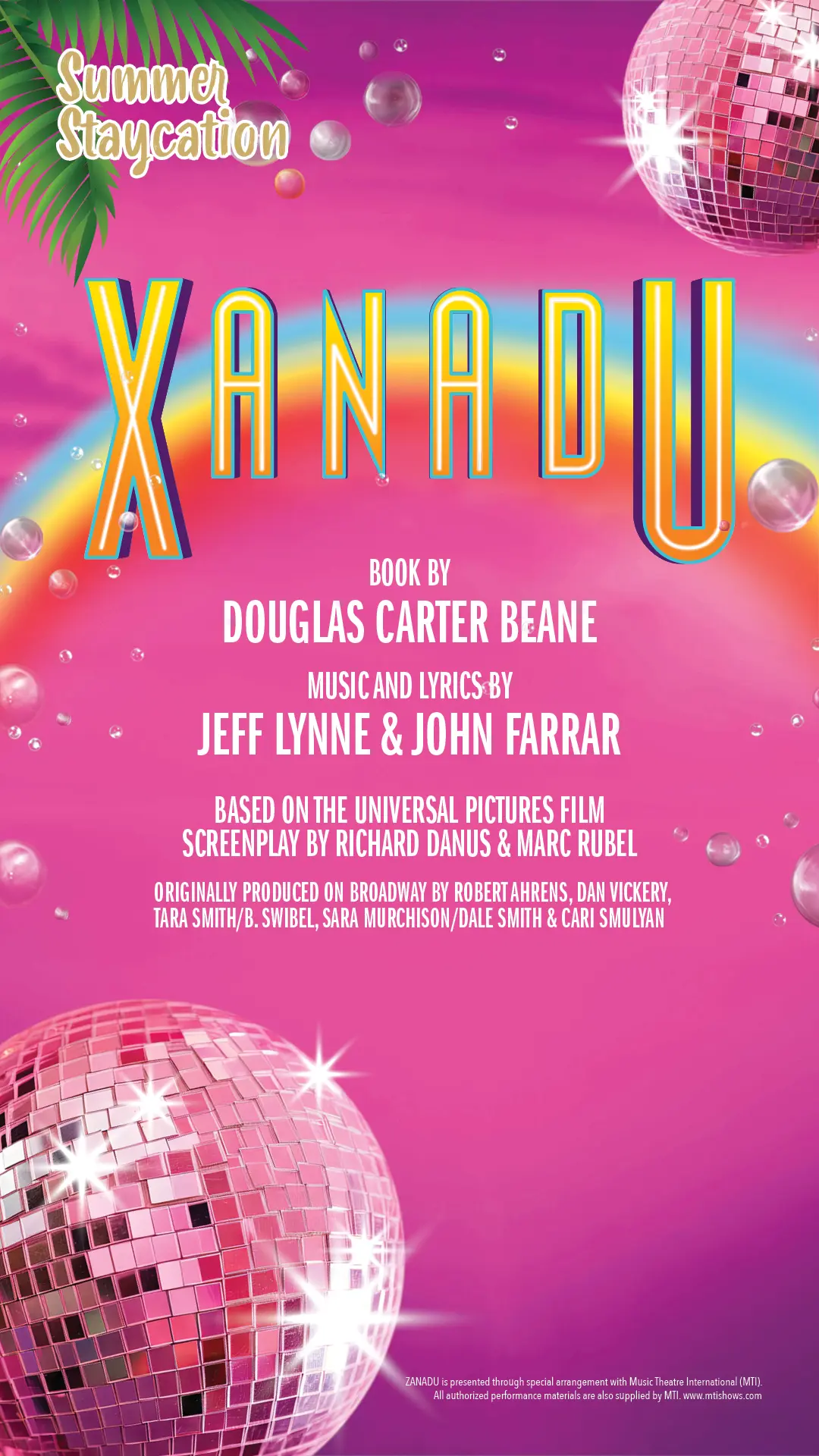 Picture this [with your polaroid camera]: Venice Beach, California, 1980, “Greek goddess meets mortal boy” story where the ultimate reward is Xanadu. This zany musical featuring the hit songs “Magic,” “Suddenly” and “I’m Alive,” follows the journey of a beautiful Greek muse, Kira, who descends from the heavens of Mount Olympus. As she embarks on a quest to inspire a mortal struggling artist, Sonny, they achieve the greatest mythical artistic creation of all time—the first roller disco! But, when Kira falls into forbidden love with Sonny, her jealous sisters take advantage of the situation, and comedic chaos ensues. Grab your roller skates, leg warmers, headbands and roll along with us for our exciting Summer Staycation production.